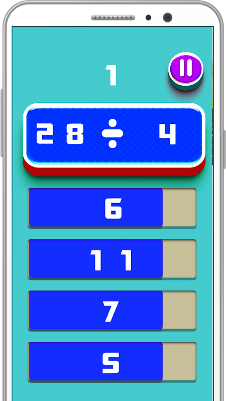 Masa yang diberikan untuk menyelesaikan operasi matematik adalah singkat, tetapi mencukupi, yang menjadikan anda menguatkan minda anda melalui kepantasan berfikir dan memilih jawapan yang betul.