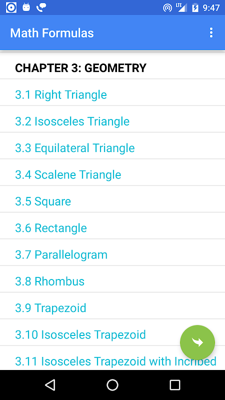Formula Matematik Offline menyediakan semua 1300+ formula matematik