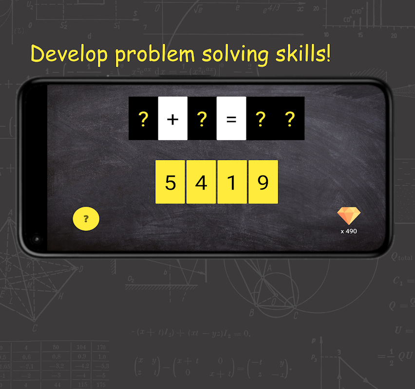 Mempraktikkan pemikiran logik membolehkan kita menyerap dan memproses maklumat dengan cepat. Permainan ini menggunakan antara operasi aritmetik asas lain (tambah, tolak, darab, bahagi) untuk mencabar kami dengan tugasan yang mencabar untuk mempertajam keupayaan kami untuk mengenali sambungan dan untuk memahami corak dan struktur dengan lebih mudah. Anda akan menikmati menyelesaikan pelbagai jenis teka-teki matematik!