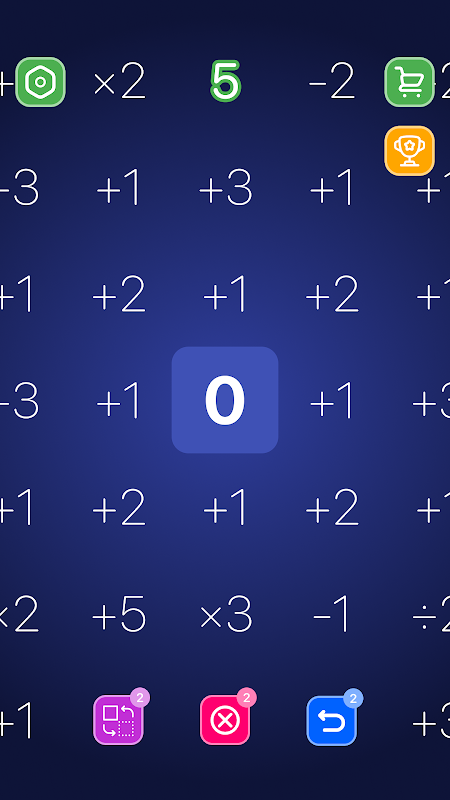 Anda bermula di tengah papan dengan nombor — biasanya sifar — dan matlamat anda adalah untuk mencapai nombor yang ditunjukkan di bahagian atas dengan melangkah melalui jubin. Setiap jubin mengandungi operasi matematik asas seperti +1, -2, ×3 atau ÷5. Rancang langkah anda dengan berhati-hati: setiap langkah mengubah nombor semasa anda, dan laluan ke penyelesaian mungkin tidak jelas!