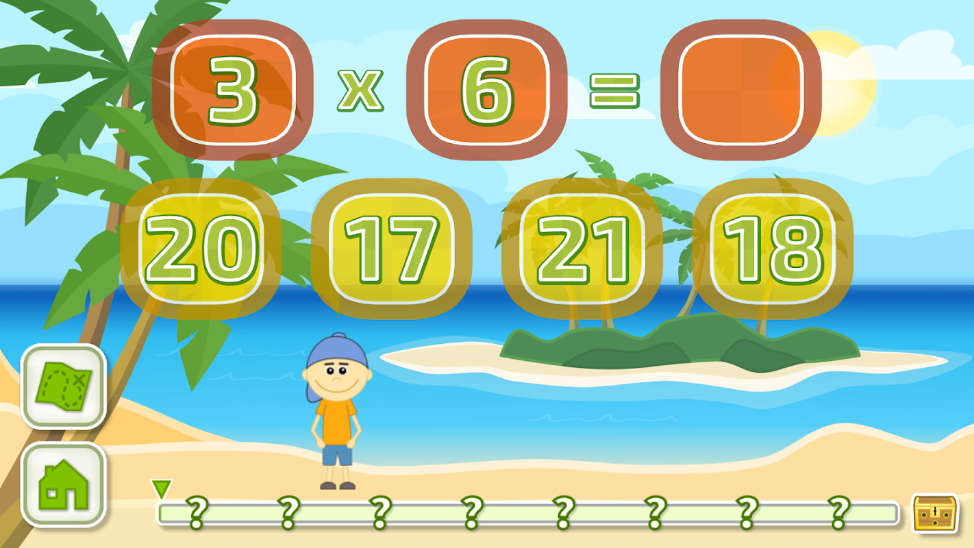 Setiap kali anda memberikan jawapan yang betul, anda bergerak satu langkah ke hadapan dan semakin dekat dengan harta karun.
