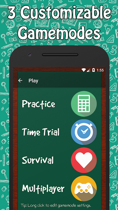 Sekarang anda boleh bermain dengan keluarga dan rakan-rakan anda berlumba-lumba antara satu sama lain pada siapa yang paling cepat dalam menyelesaikan soalan.
