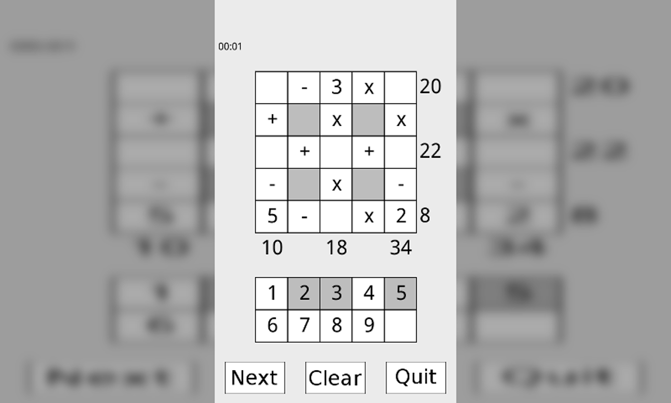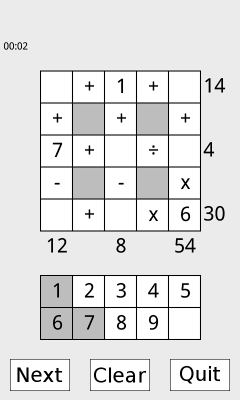 Isi petak dengan nombor 1 hingga 9 supaya aritmetik sepadan dengan nombor di hujung setiap baris dan lajur.