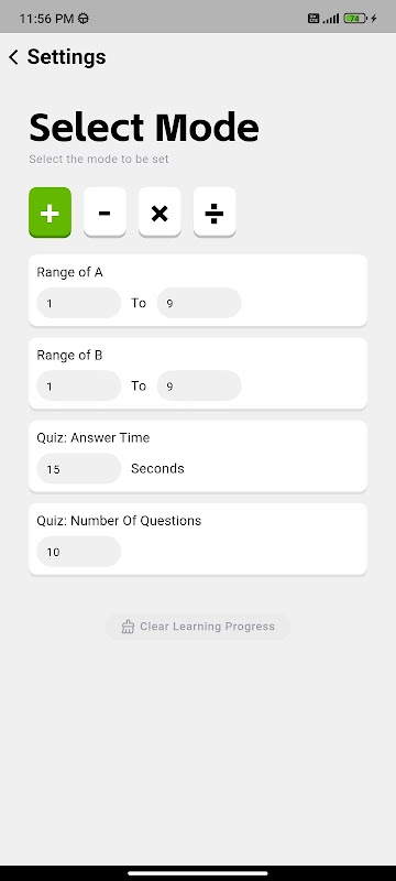 1. Mod Kuiz: Anda boleh menetapkan kesukaran soalan secara bebas untuk sebarang operasi dalam penambahan, penolakan, pendaraban dan pembahagian.