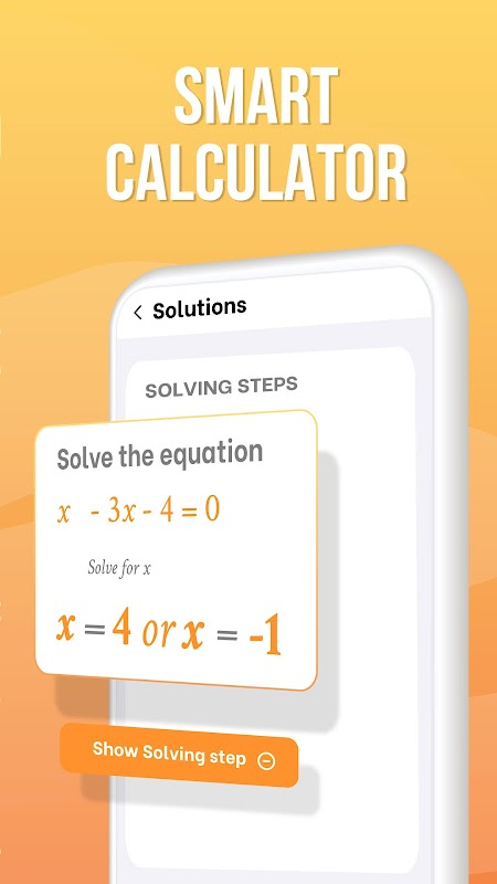 Matematik tidak lagi menjadi subjek yang sukar untuk ramai orang. Dengan Mathai pintar, anda hanya perlu memasukkan formula dan kalkulator persamaan akan memberi anda jawapan secara automatik. Cukup arahkan kamera anda ke arah masalah dan kalkulator foto secara ajaib menunjukkan hasilnya dengan arahan langkah demi langkah terperinci. Kalkulator akan memberi anda jawapan kepada mana-mana soalan matematik dengan hanya mengambil gambar itu. Mathai adalah cara yang baik untuk memeriksa kerja rumah anda, belajar dan belajar matematik.