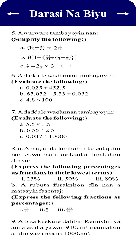 Terdapat juga banyak contoh dengan aktiviti biasa dalam budaya dan komuniti hausa untuk menjadikan pelajar mudah memahami soalan dan penyelesaian mereka.