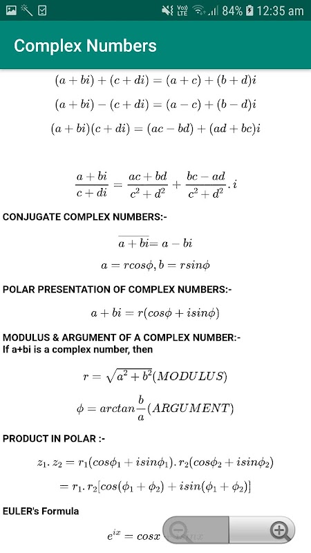 This app is having Maths Formulas consists of Algebra, Derivative, Integration, complex numbers, etc.