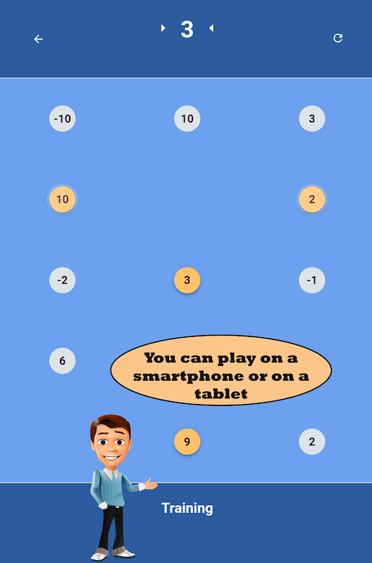 This playful game can be played by everyone. Everyone is welcomed to test his calculation skills (addition and substraction).