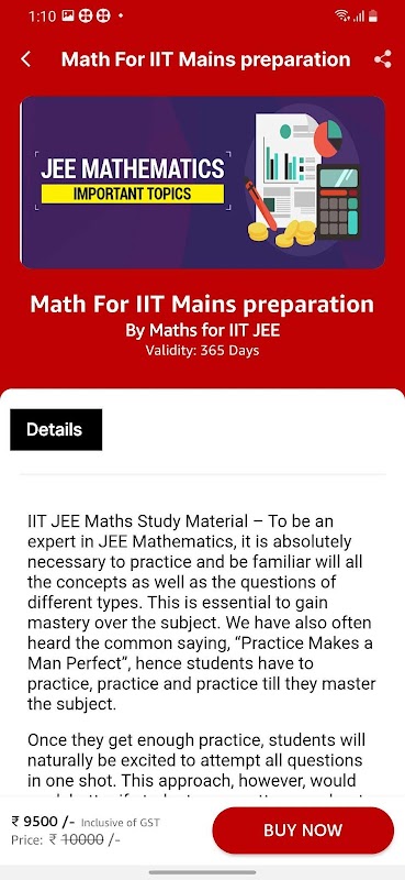 Aplikasi ini mempunyai kursus untuk peperiksaan kemasukan seperti IIT-JEE.