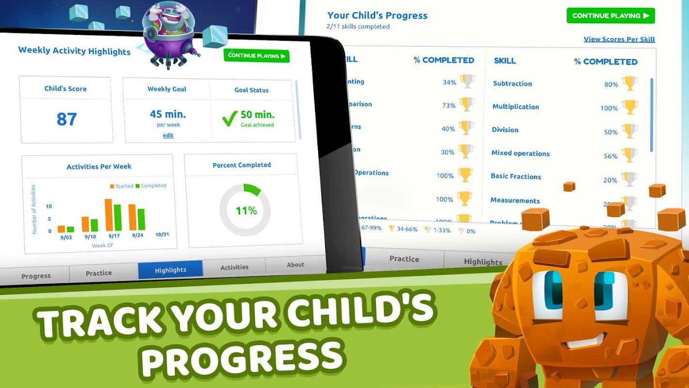 The “Skip” mechanism has now been improved to ensure that your child never feels stuck and can always move forward in the game while learning mathematics and having fun.