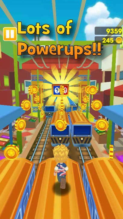 After get some coin we can buy power ups and we can increase our abilities in this game, thanks to these abilities we can gain more coins and we can go more faster. Also we can unlock new characters and surf board thanks to gain coins. There are some useful items for difficult situations. İf you can use it to save the character. These items are: rockets to fly, skateboard to take extra life, jumping boots for jumping bigger and others…