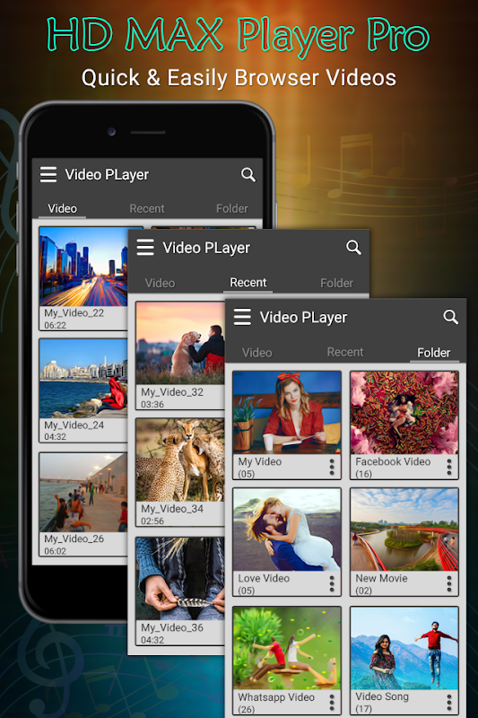 Enjoy every moment to watch any video , movies etc.. and MAX Player Pro for hd video supports almost all video formats including AVI , MOV, MP4 , RMVB , MKV , 3GP , M4V , MPG , WMV etc, just depends on your phone or tablet .