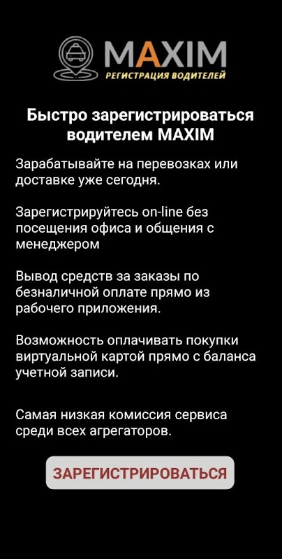 С помощью "MAXIM: водитель такси" Вы можете быстро пройти регистрацию и начать работать в такси уже в течение 15 minit!