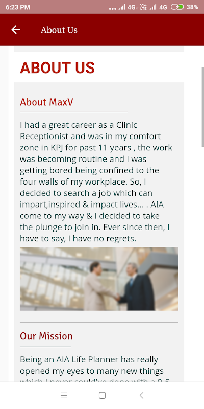 I had a great career as a Clinic Receptionist and was in my comfort zone in KPJ for past 11 years , the work was becoming routine and I was getting bored being confined to the four walls of my workplace. So, I decided to search a job which can impart,inspired & impact lives... . AIA come to my way & I decided to take the plunge to join in. Ever since then, I have to say, I have no regrets.