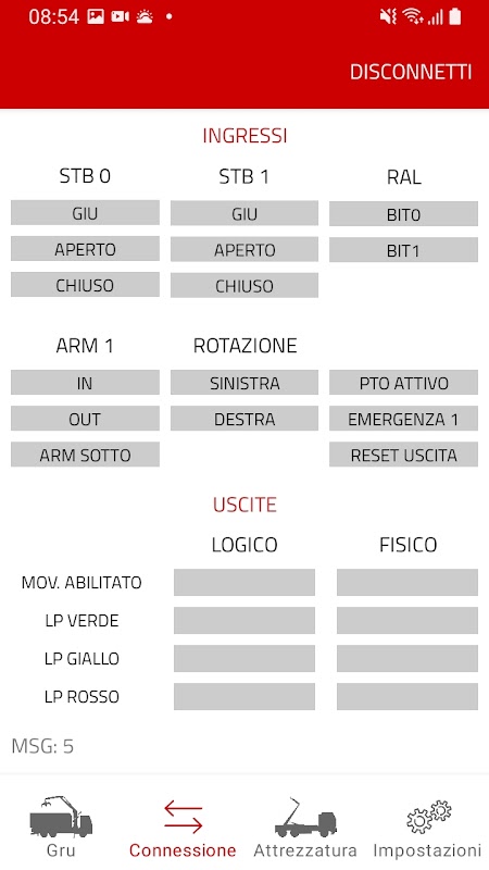 Dari aplikasi M-BOX, anda mempunyai akses ke data masa nyata yang berkaitan dengan kren anda dan peralatan roll-off dan tipping yang disambungkan ke kit Marchesi Gru Industry 4.0.