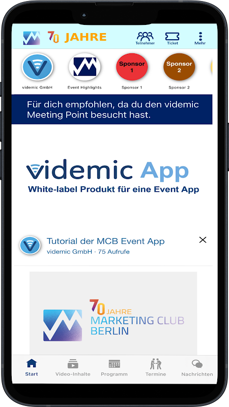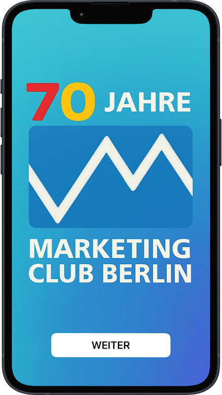 Ini adalah aplikasi acara untuk ulang tahun ke-70 Kelab Pemasaran Berlin. Kelab ini menyediakan ekonomi Berlin dengan sekumpulan luas pengetahuan, idea dan visi daripada ahlinya - secara sukarela, bebas dan rangkaian.
