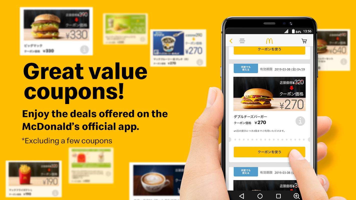 Sila pilih menu kegemaran anda. Anda juga boleh menggunakan kupon (* tidak termasuk beberapa) yang diedarkan dengan aplikasi rasmi.