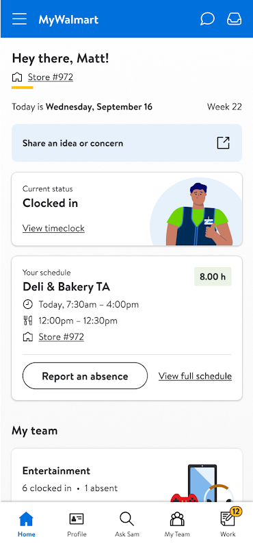 Aplikasi MyWalmart tersedia untuk semua rakan sekutu di kedai.