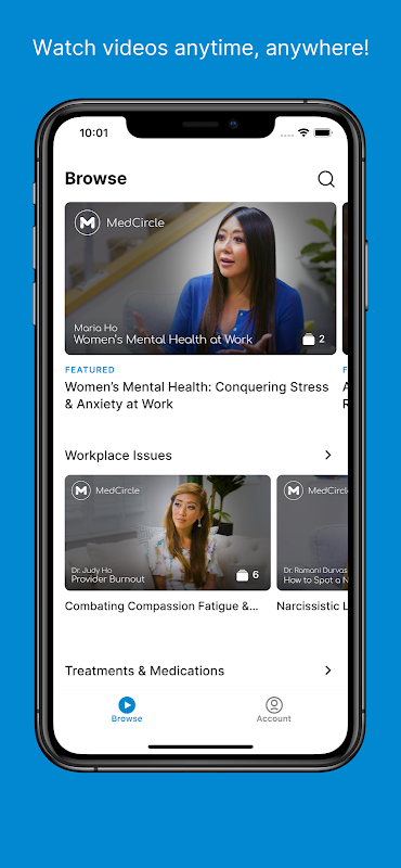 Dengan kandungan baharu yang dikeluarkan setiap minggu, perpustakaan video MedCircle yang memenangi anugerah memberikan anda cerapan "sebalik tabir" daripada ahli psikologi dan psikiatri yang paling dicari. Anda akan mempelajari perkara yang diperlukan oleh diagnosis tertentu dan mendapat cerapan yang belum pernah berlaku sebelum ini tentang proses yang digunakan oleh doktor berpengalaman untuk mendiagnosisnya. Anda juga akan memahami pilihan rawatan, risiko dan faedah yang dipertimbangkan oleh setiap doktor semasa memberi preskripsi, dan cara mereka menyediakan terapi dan/atau ubat.