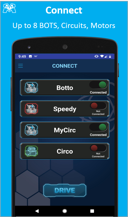 Meeper Robotics membolehkan anda untuk Kawalan dan Kod meeperBOT dan Kawalan Litar Meeper untuk membina bata dan kit litar yang menyeronokkan dan membuat mereka hidup. Bina penciptaan bata yang paling menakjubkan anda, lampirkan ke meeperBOT anda dan anda pergi dan memandu dan pengekodan. Berkumpul mudah ke litar kompleks dan Kawalan dan Kod sehingga 10 litar dalam App Meeper dengan BOTCode® dan Blockly. Ketahui lebih lanjut mengenai Litar dan Robot dengan pelajaran STEM kami yang digunakan dalam ribuan sekolah. App Meeper membolehkan anda menyambung sehingga 8 BOTS atau Kawalan Litar. Program mudah untuk kenderaan dan litar kawalan jauh yang kompleks dan interaktif.