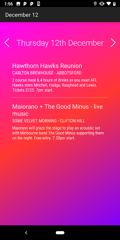 When you’re looking for something to do on a specific night of the week click ‘Weekly’ to be met with a huge range of choice like steak nights, trivia sessions, comedy evenings, live music gigs, boozy brunches, and plenty more. Our App will encourage you to explore and discover Melbourne like never before.