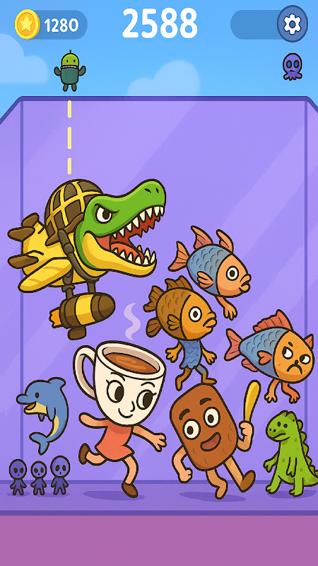 Temui watak lucu yang tidak masuk akal, dan banyak lagi apabila anda menggabungkan makhluk yang sama menjadi yang lebih besar dan lebih pelik. Matlamat anda? Jauhkan bekas daripada melimpah dan buka kunci makhluk meme misteri yang muktamad... bolehkah anda meneka apakah itu?