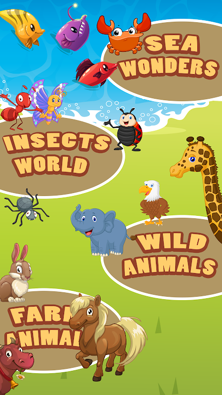 The game is a cards matching game coming with colorful images and involving sounds of farm animals, wild animals, sea creatures and insects .It also has 3 difficulty challenging levels and it indicates about new records so adults can enjoy the game while exercising their brains!