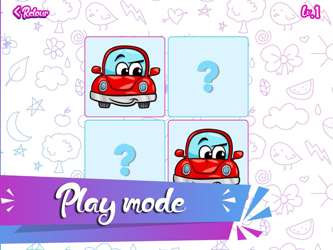This memory game is dedicated to kids, it's easy to use, when you enter the game, just pick a theme, your kids can choose between two modes : play or learn.