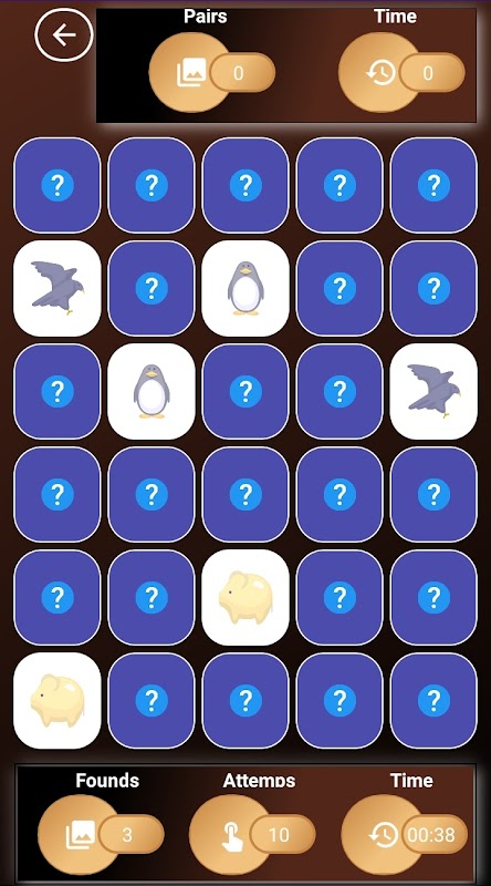 Permainan ini dimenangi dan berakhir apabila anda menemui semua pasangan sebelum had masa tamat.