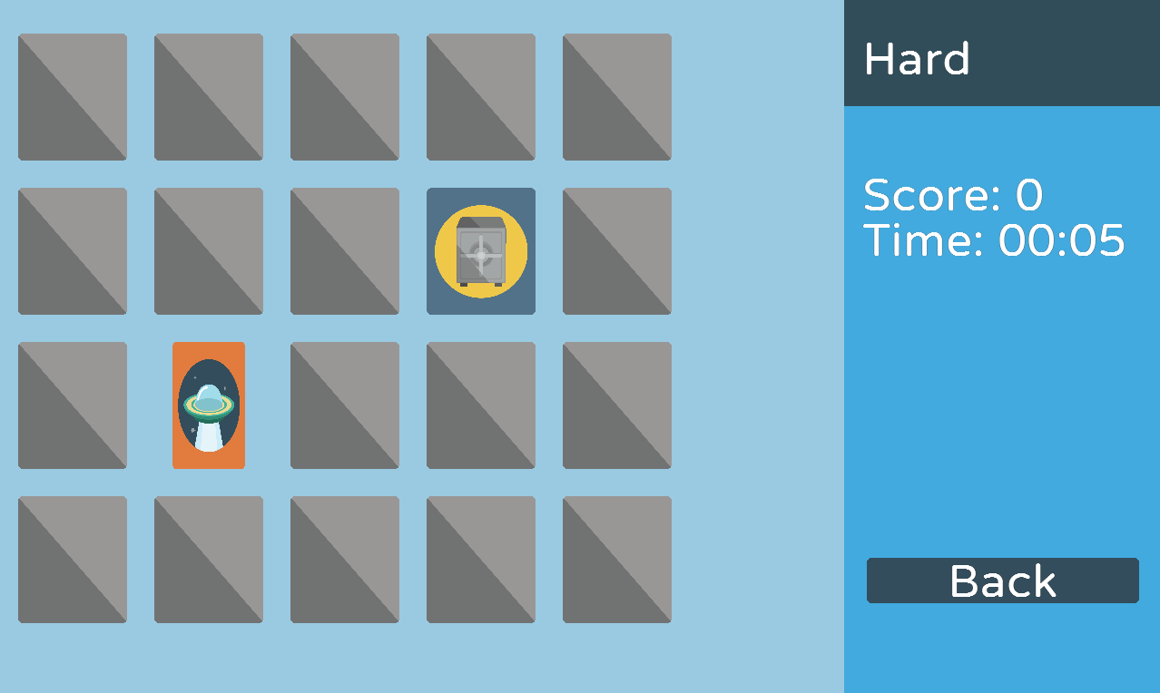 Memotest - Search the pairs of cards by turning up two at a time and reach the most points.