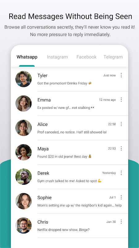 Kehidupan sosial anda semakin mudah - biarkan Message Peeping Tom mengendalikan semuanya.