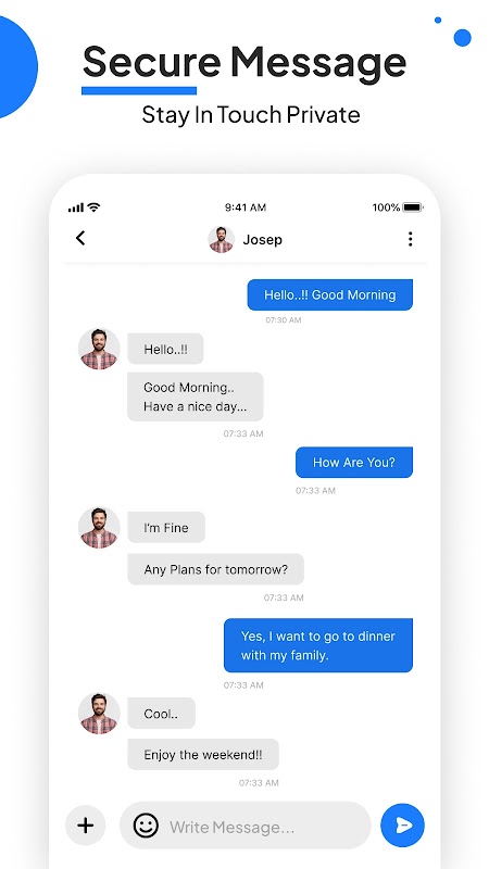 Messenger - Apl Mesej SMS ialah apl pemesejan teks yang disulitkan yang menggunakan penyulitan hujung ke hujung untuk komunikasi yang selamat. Apl Pemesejan Teks SMS yang membolehkan anda menghantar dan menerima SMS, MMS dan bersembang dengan kenalan anda. i message memberi anda cara yang mudah dan cekap untuk kekal berhubung dengan rakan, keluarga dan rakan sekerja anda.