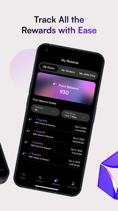 Roam Points berfungsi sebagai teras sistem ganjaran kami, direka untuk menjadikan pengalaman penyambungan WiFi anda menarik dan bermanfaat.