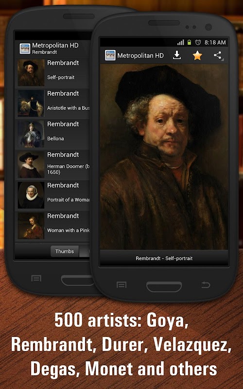 App contains a collection of more than 1500 best paintings of the Metropolitan Museum. Here you will find the works of Rembrandt, Durer, Velasquez, Edgar Degas, Francisco de Goya and many other famous painters.