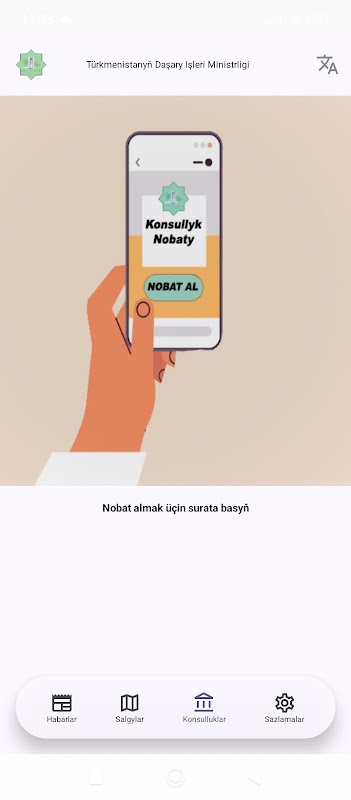 Aplikasi Mudah Alih Kementerian Luar Negeri Turkmenistan di mana anda boleh membaca berita terkini tentang hal ehwal luar negeri Turkmenistan. Anda boleh melihat senarai alamat kedutaan