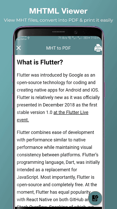 Mhtml viewer atau aplikasi pembaca Mhtml mempunyai viewer pdf sendiri di mana anda boleh melihat mht yang ditukar ke fail pdf dan juga melihat fail pdf dari storan peranti dengan mudah. Mht creator adalah alat percuma di mana anda dapat melihat sebarang fail mht atau pdf dengan mudah walaupun anda tidak mempunyai sambungan internet.