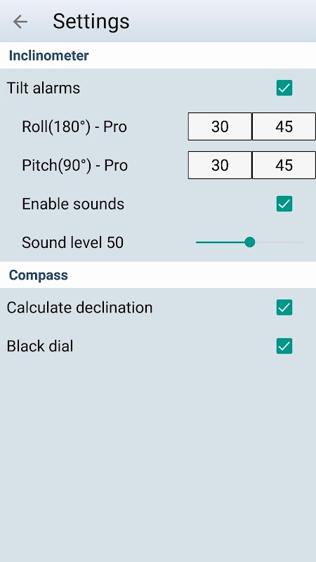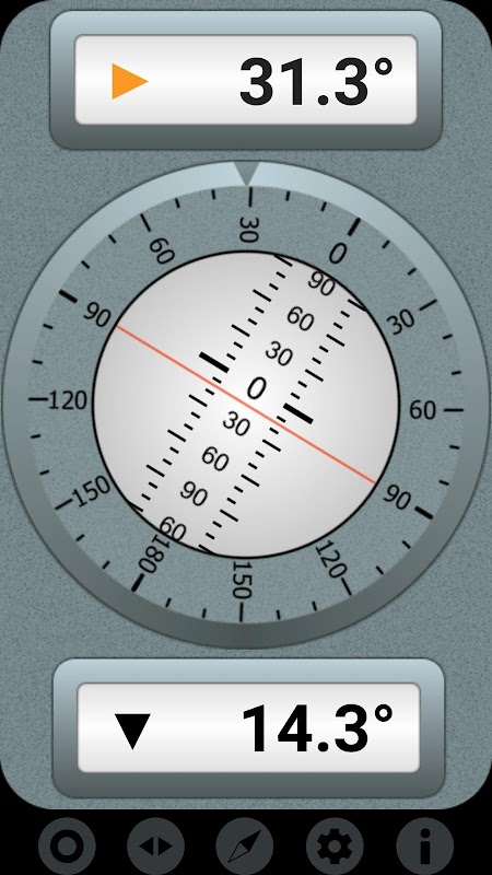 This Inclinometer android application is a very accurate slope measurement tool that offers dual (analog and digital) display of the acquired data. All you have to do is to align your mobile device along the surface or the plane whose inclination will be measured. If the phone is in a perfect horizontal position, our app will normally indicate zero (0.0°) for the roll an the pitch about the X and Y axes. This means that the accuracy of the measurement is a tenth of a degree (0.1°).