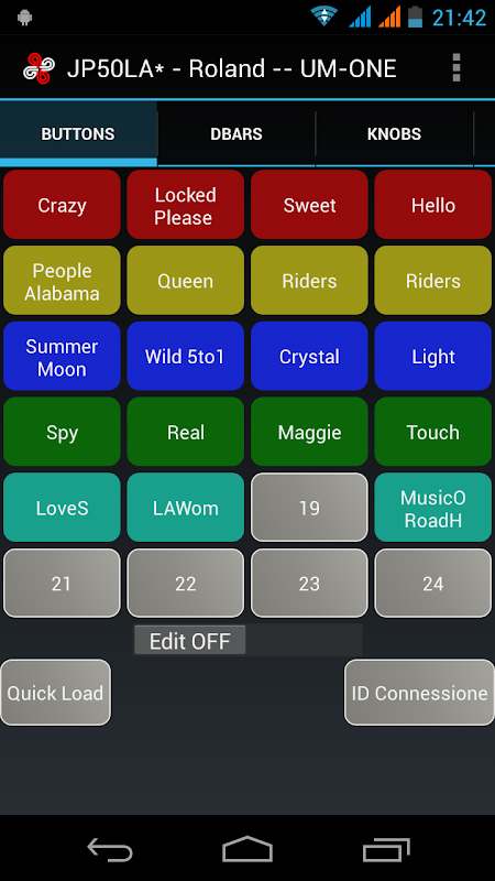 Selepas menetapkan suis EDIT untuk ON, gunakan klik panjang pada butang untuk menukar nilai-nilai dan nilai-nilai yang dihantar. Fungsi-fungsi lain boleh diakses melalui menu '.