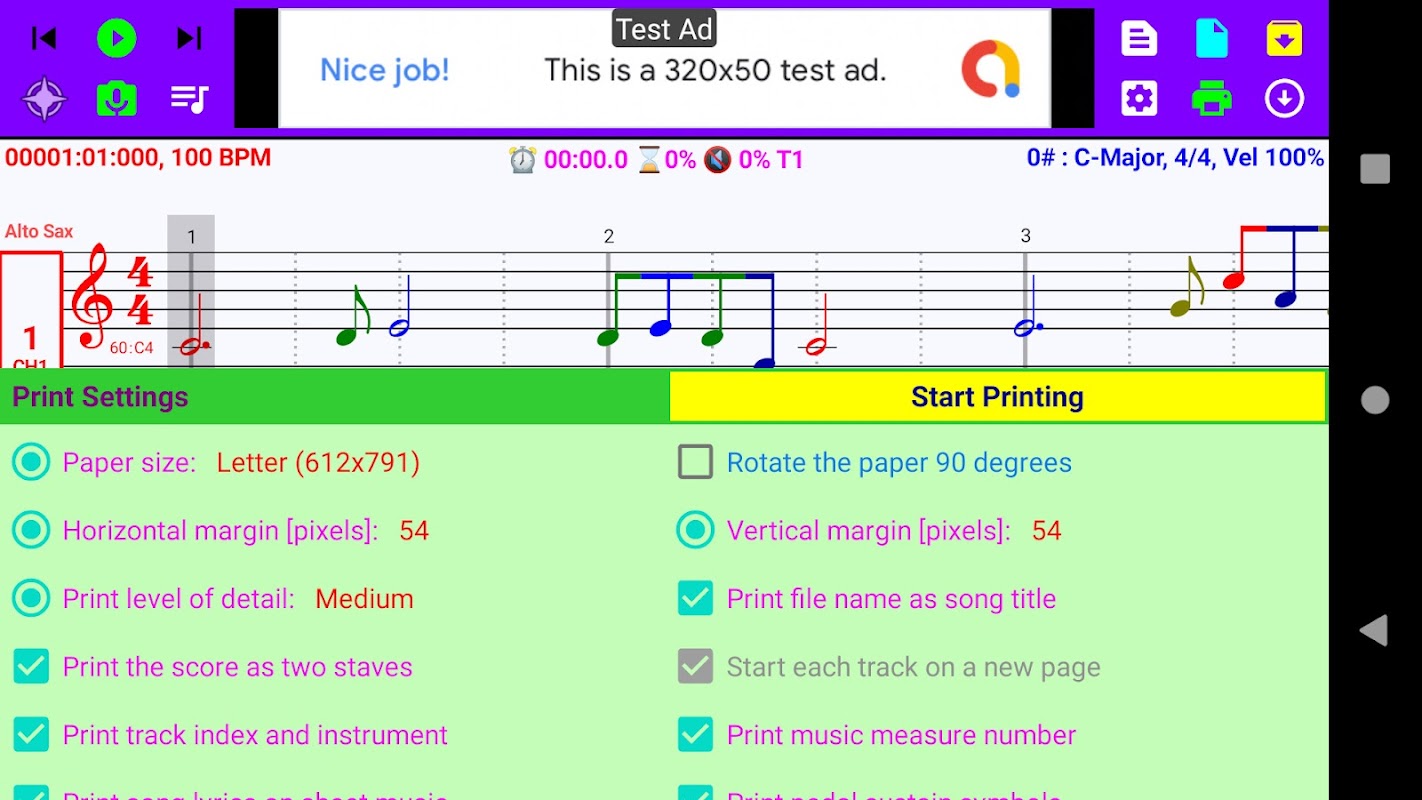Ketik butang untuk memainkan nota MIDI.