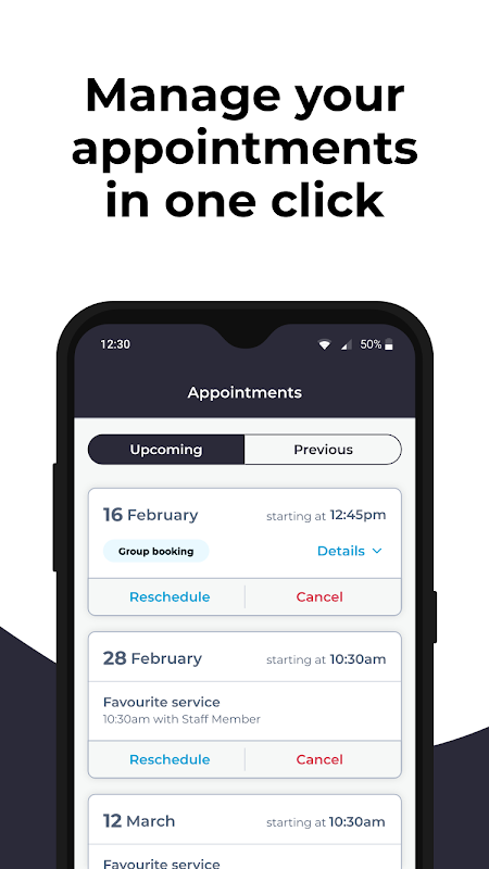 Pesan dan uruskan janji temu anda dengan mudah aplikasi mudah alih kami.