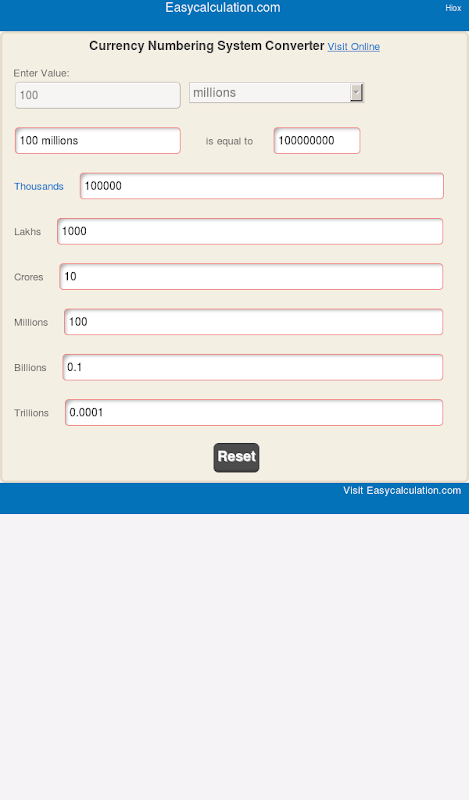 Million and Billion Converter : Convert Million, billion values into Indian Currency Numbering System (Lakhs, Cores, Thousands) and vice versa with this application.