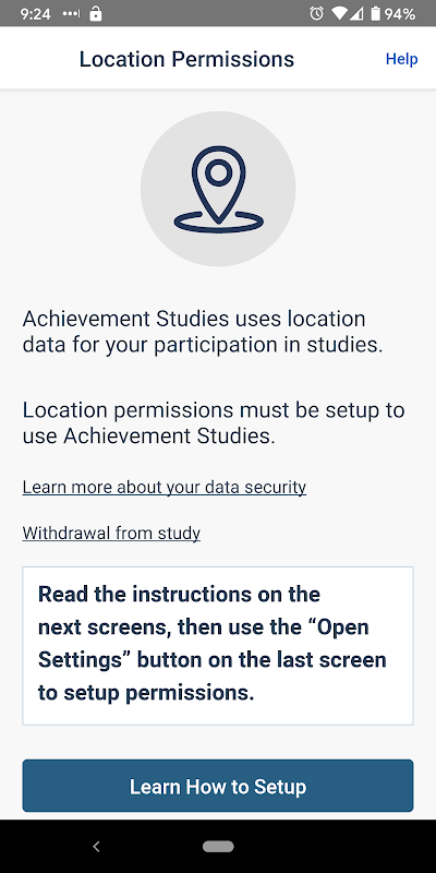 Untuk mengambil bahagian dalam kajian ini, anda mesti menyelesaikan aktiviti pra-pendaftaran dan memenuhi kriteria kelayakan pengajian khusus untuk terus maju dengan proses pendaftaran. Peserta kajian harus memuat turun dan menggunakan aplikasi hanya setelah mendapat notis daripada Kajian Pencapaian yang mengarahkan mereka memuat turun aplikasi tersebut.