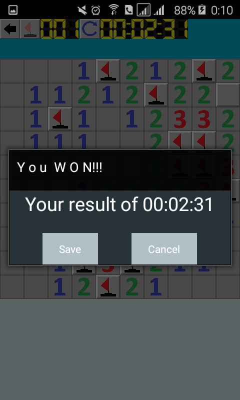 Tujuan permainan: untuk menemukan tambang tersembunyi.
