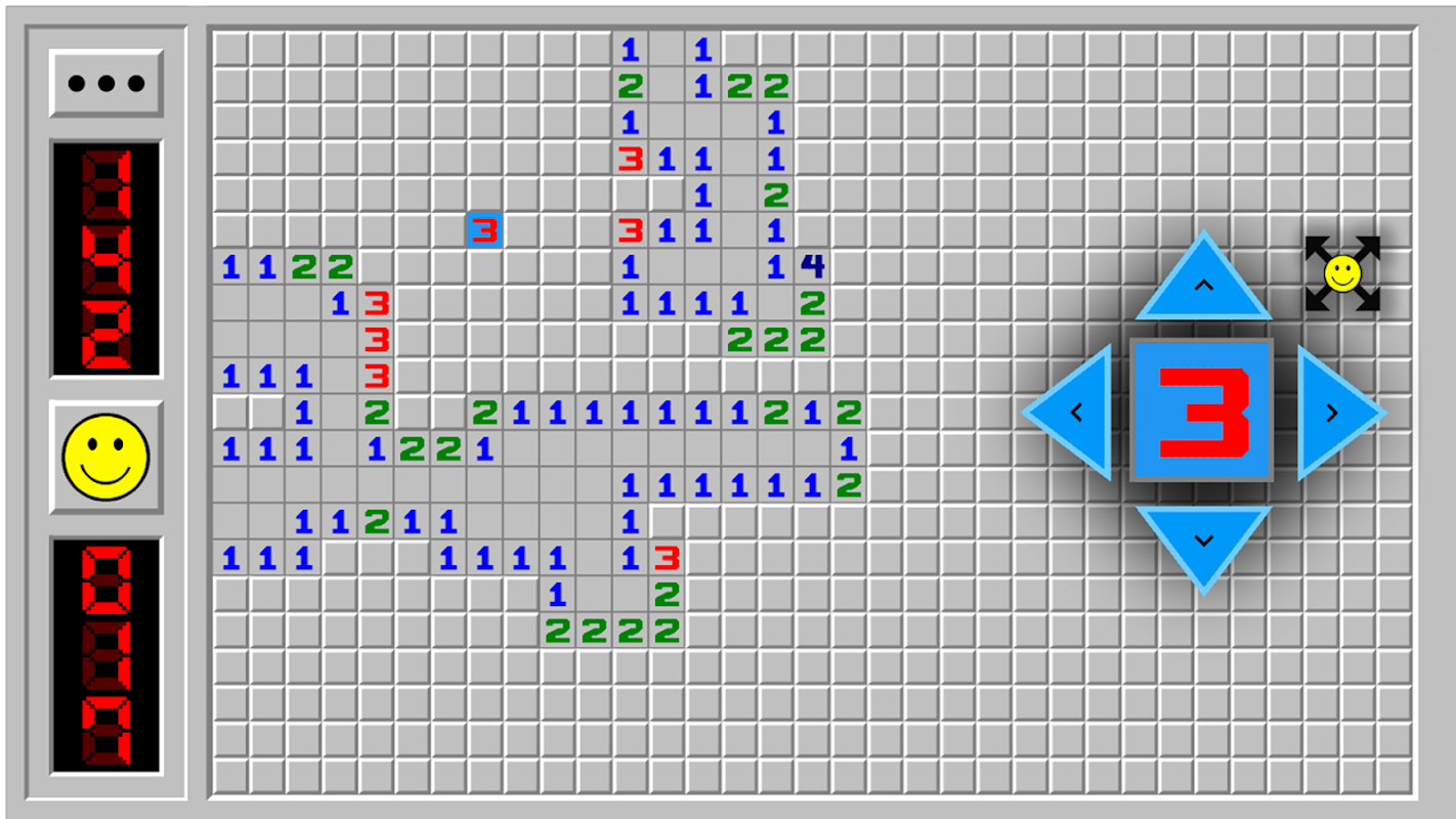 Beberapa kotak memiliki nomor, yang menunjukkan jumlah ranjau di sel sekitarnya. Jadi, jika kotak memiliki angka 3, itu berarti bahwa dari delapan kotak di sekitar (jika tidak di sudut atau tepi) ada 3 dengan ranjau dan 5 tanpa ranjau. Jika sebuah kotak ditemukan tanpa nomor, itu menunjukkan bahwa tidak ada kotak tetangga yang memiliki tambang dan ini ditemukan secara otomatis.
