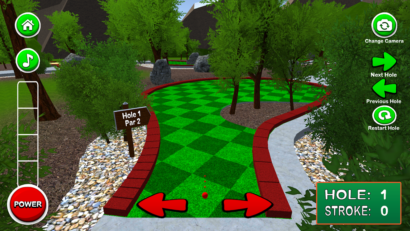 Mini Golf 3D 2 is a free mini golf game that currently includes one 18 hole course (more to come soon) with a simple to use interface and appealing graphics. Mini Golf 3D 2 features normal mode, where you can compare your high scores with people around the world and unlock achievements, and a practice mode where you can skip around the course and play any hole you like. There are also 3 different camera modes to cycle through including a behind-the-ball view, aerial view, and another view that gives you a preview of the hole. You can sign in to the Google Play Games Service to compete against friends on the global leader boards and earn achievements as well. The leader boards rank the best scores for the current day, week, and all time, as well as the total number of holes-in-one and rounds completed. If you enjoy mini golf, you'll love this relaxing, yet challenging mini golf game. See if you can set the high score and become the mini golf champion!