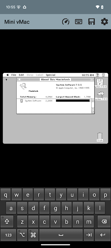 A berfungsi sepenuhnya Mac Plus emulator untuk platform Android.