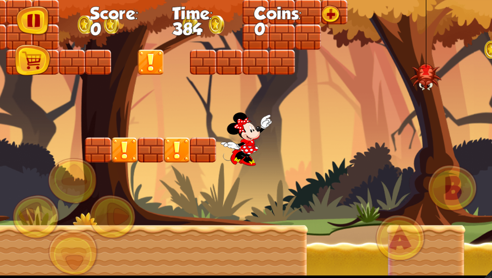 This Jungle run mickey the mouse and minie Game is a Free adventure Game the concept try to help mickey the mouse ,in collecting coins and jump from