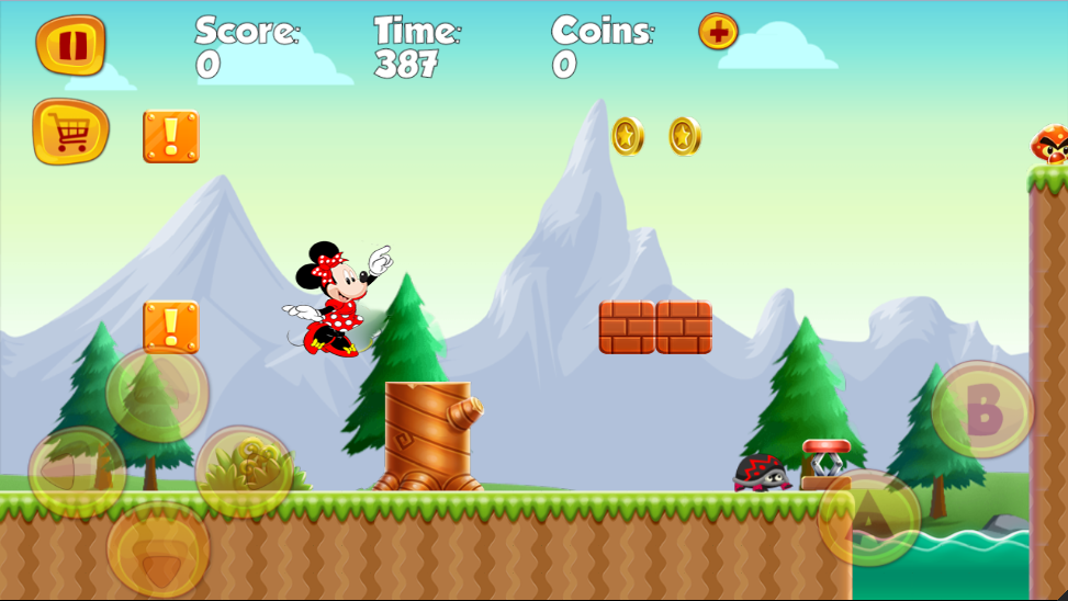 one world to another and Jungle to get all the coins you can and be careful not to fall because if minniee the mouse do
