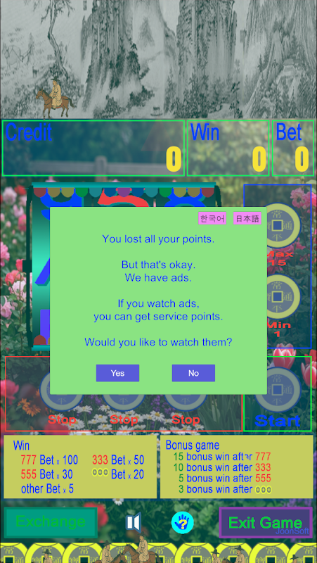 Points used in the game can be obtained by watching advertisements.