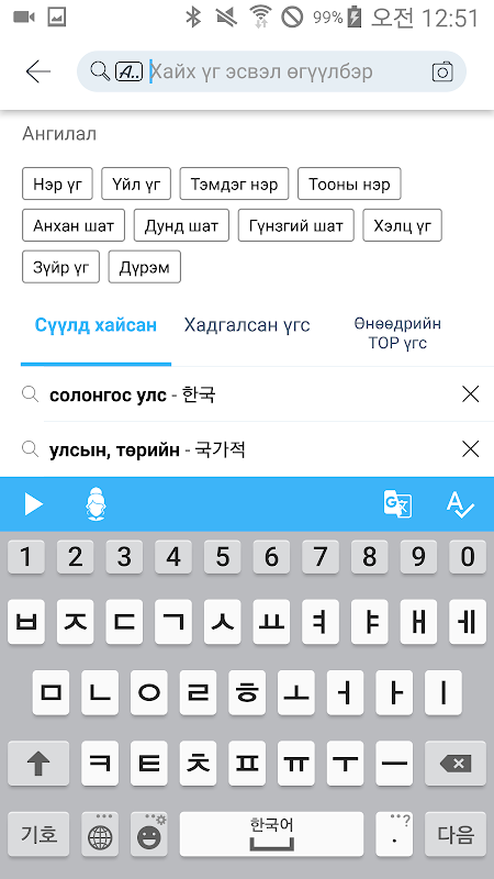 Perbendaharaan Kata - Aplikasi Korea Mongolia kamus yang mengandungi kira-kira 50 ribu perkataan pemula, pertengahan, tahap maju